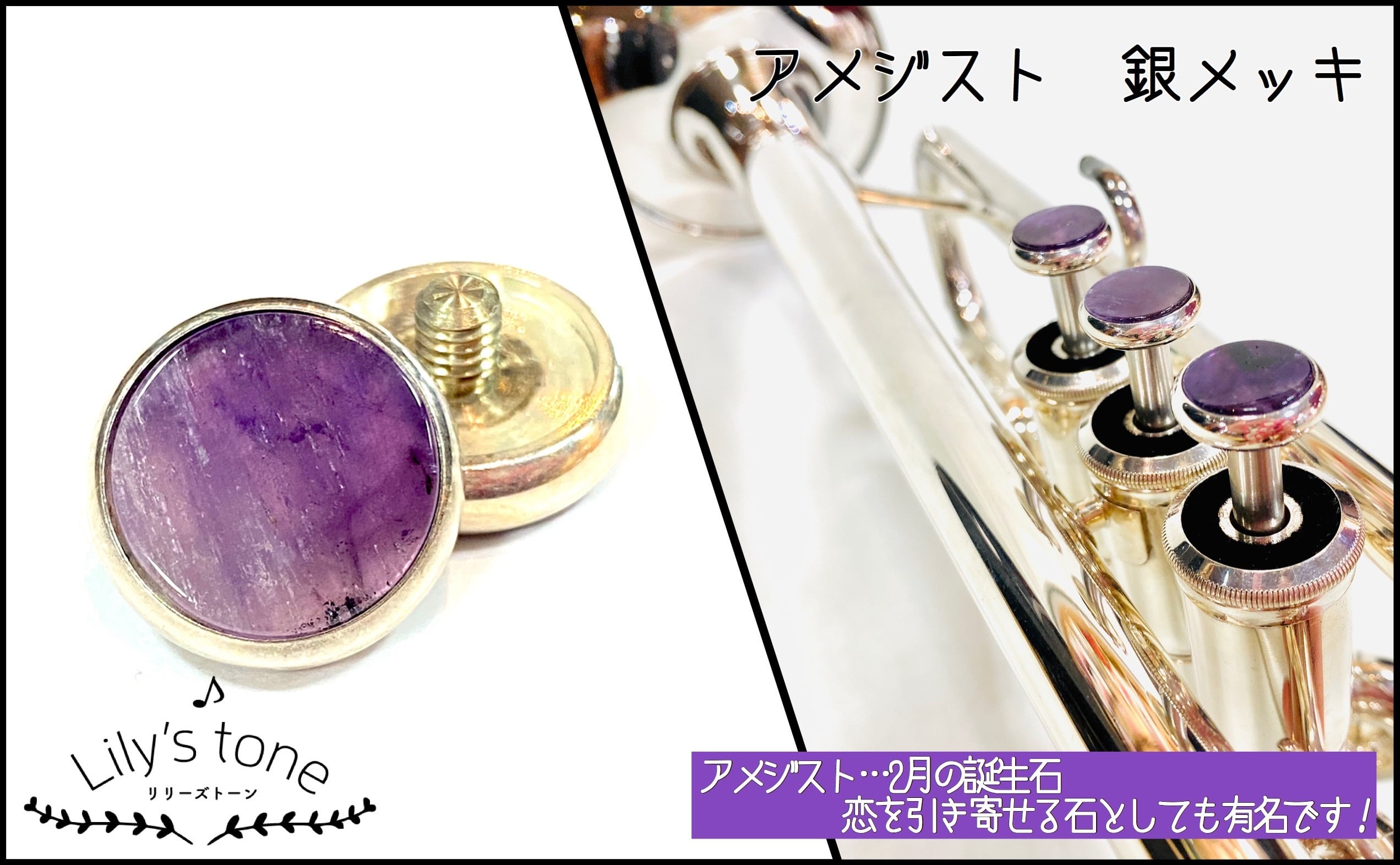 トランペット用ピストンボタン|銀メッキ仕上げ・3個セット(ヤマハ対応)【Lily's tone】