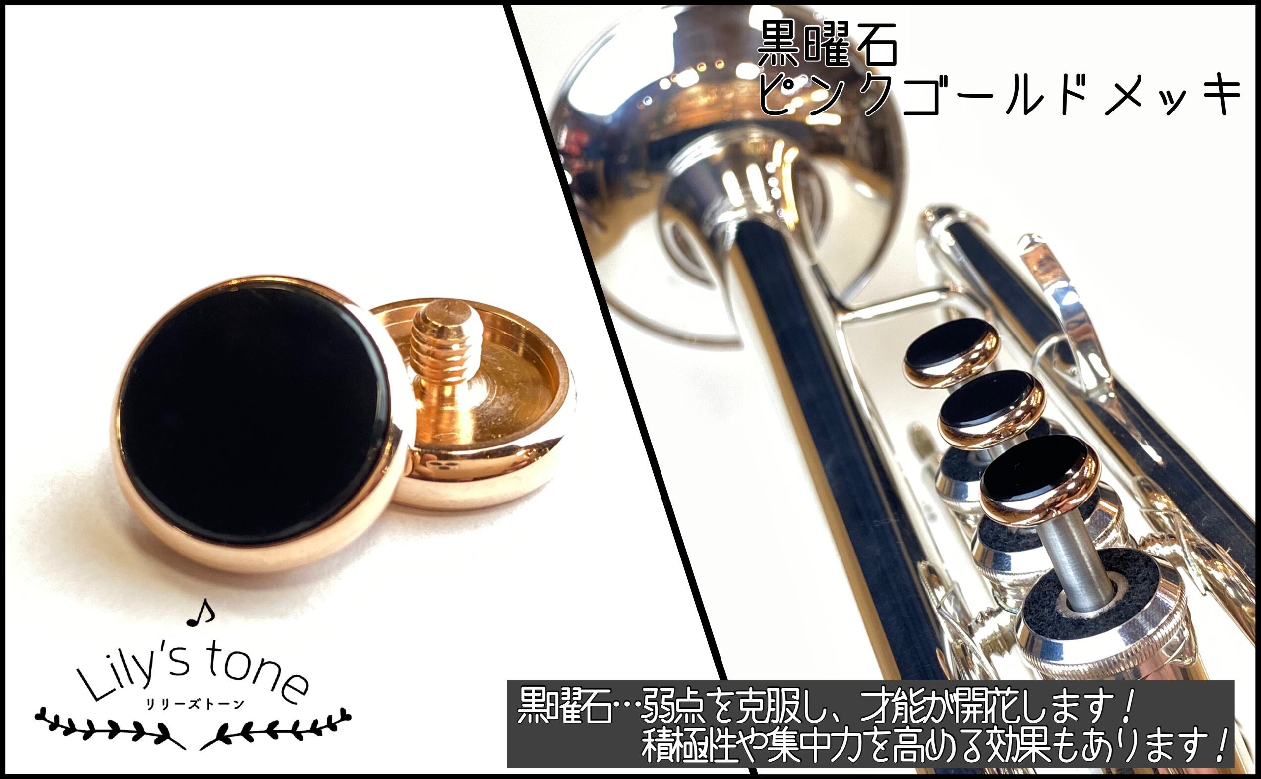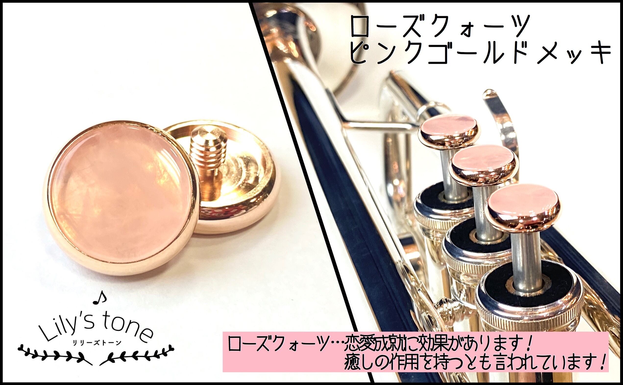 トランペット用ピストンボタン|ピンクゴールドメッキ仕上げ・3個セット(ヤマハ対応)【Lily's tone】